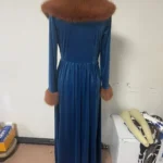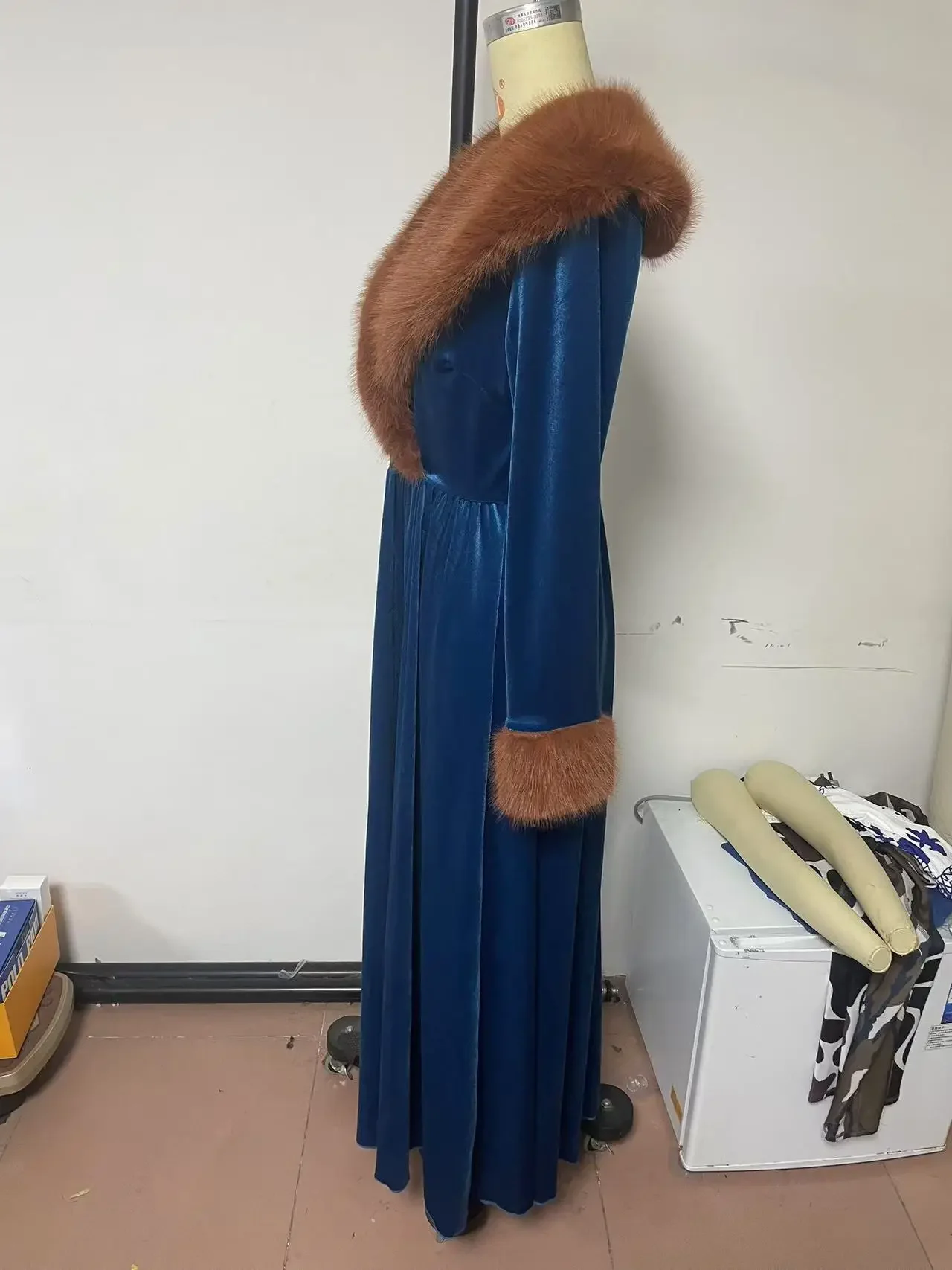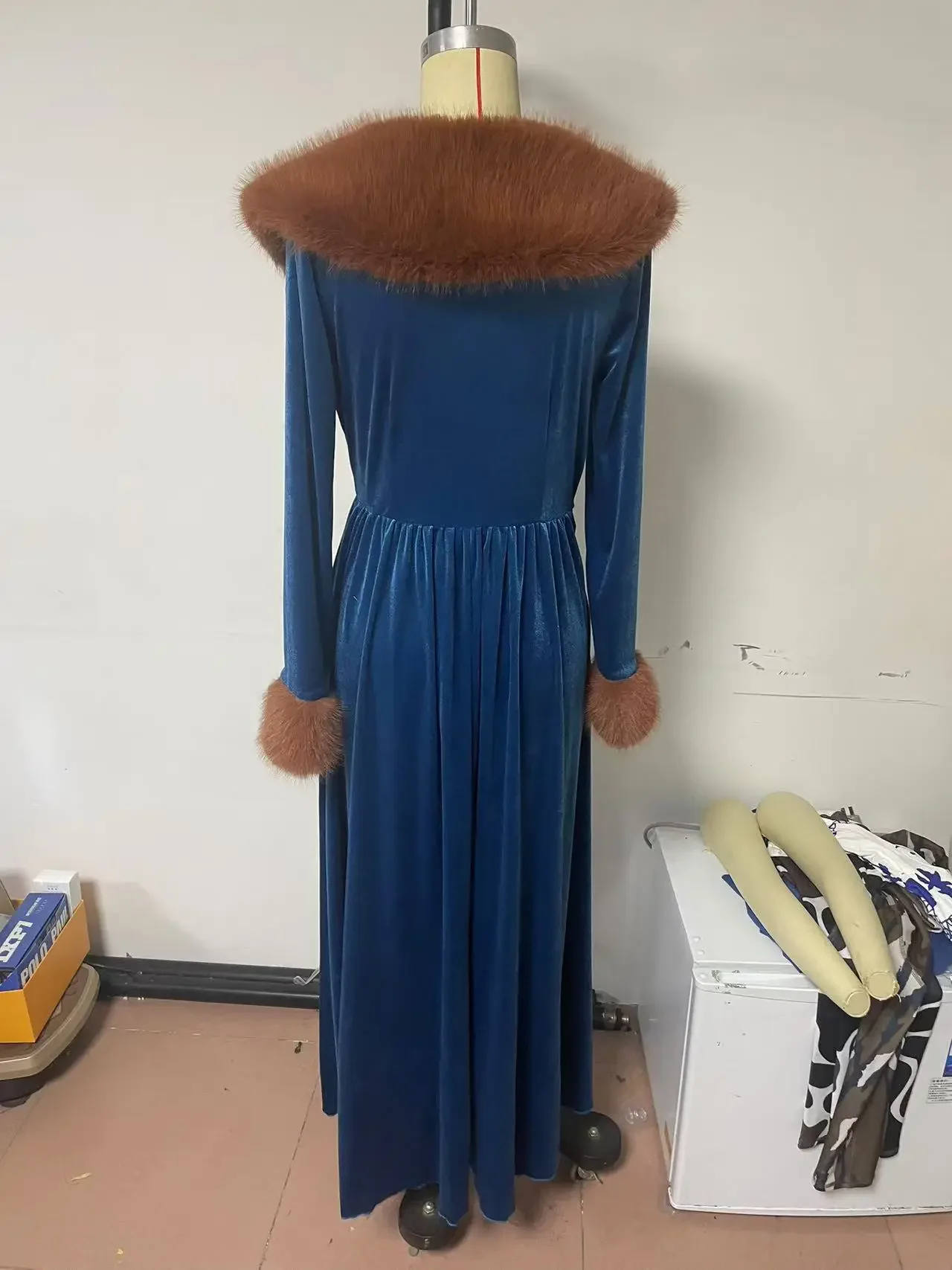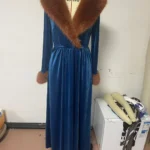 Elegant Women’s Dress Autumn and Winter Fashion New Long Sleeve Long Thickened Gold Velvet Dress Fur Collar Coat Dress 2024
