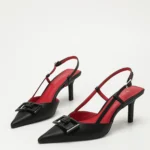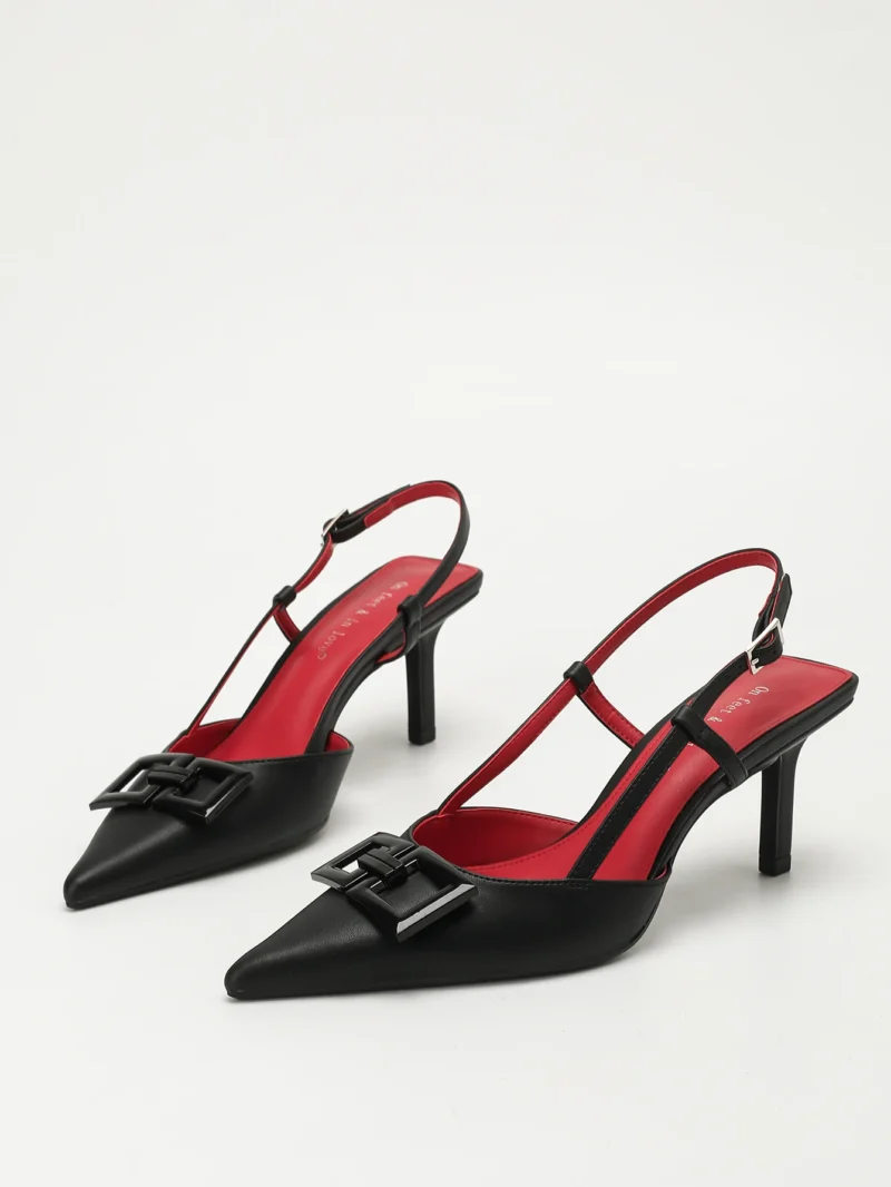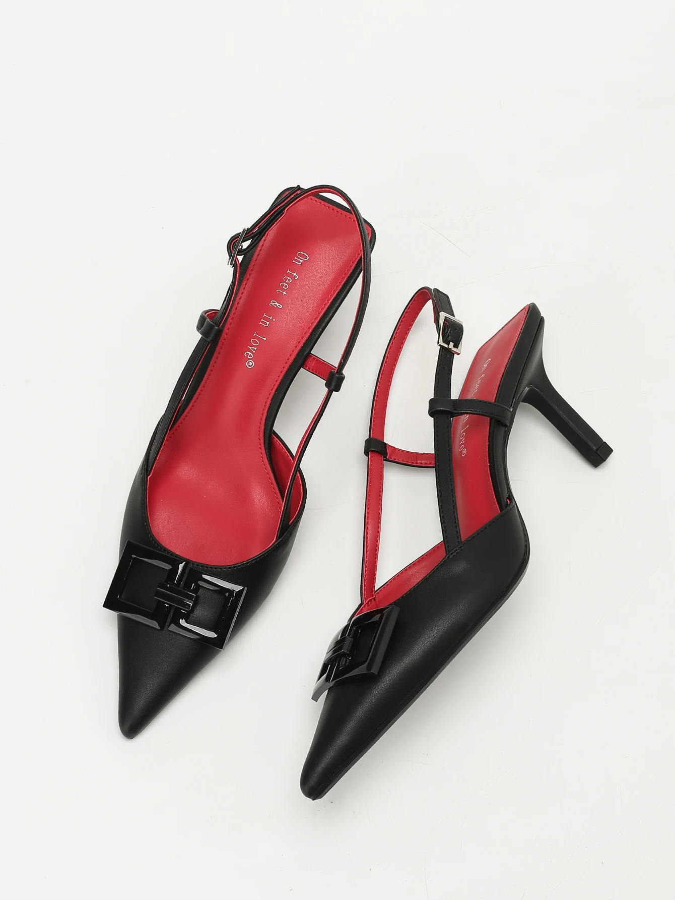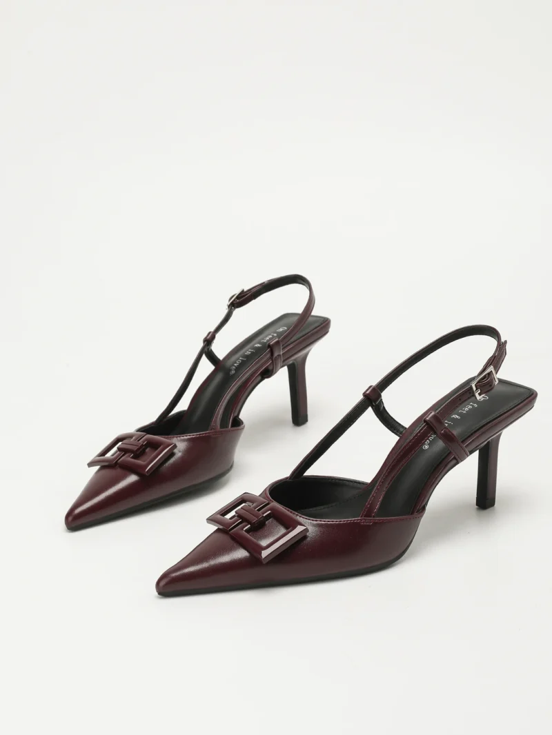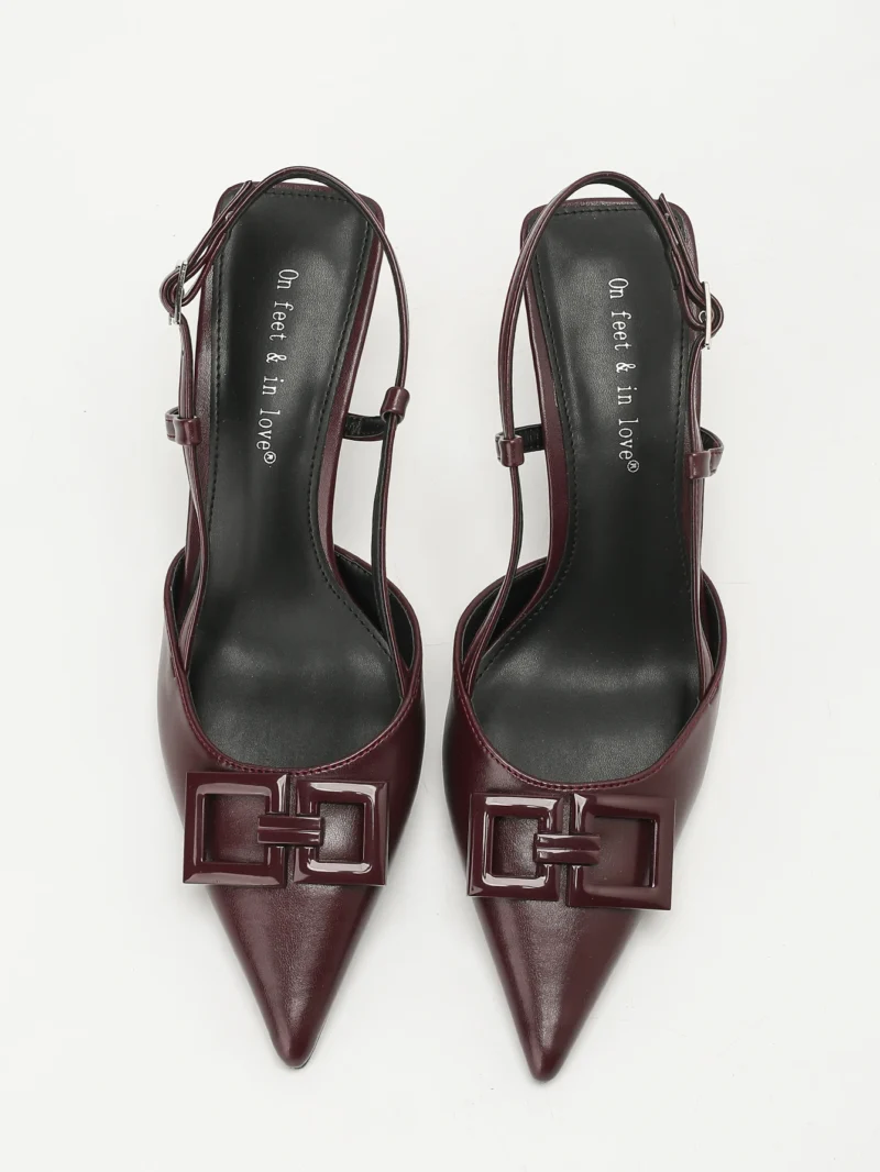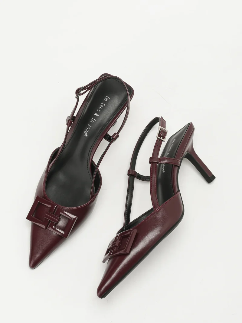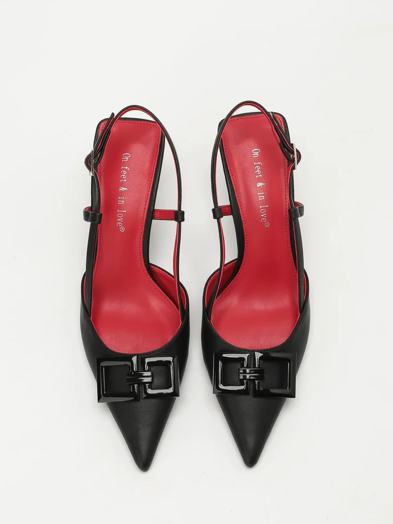 Elegant Women’s Square-Buckle Decorated Pointed-Toe Stiletto Sandals