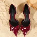 Women Bow Decorated Fashion Elegant Patent Leather Stiletto Heels Comfortable Simple and Versatile High Heels
