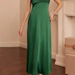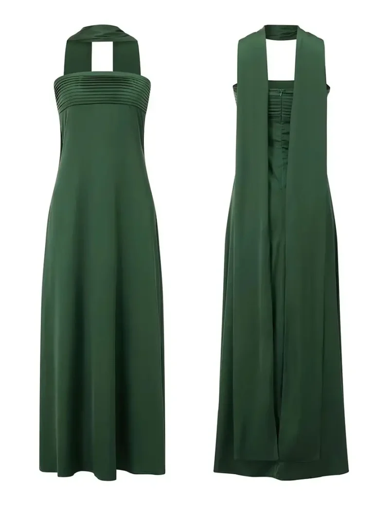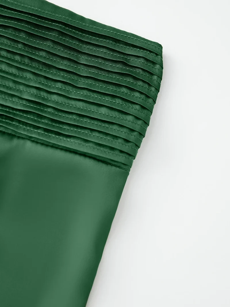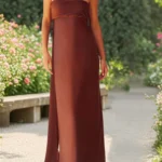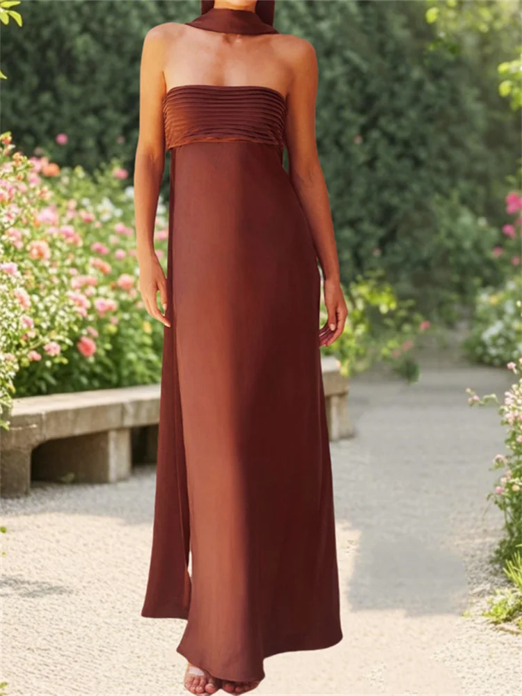 Women’s Elegant Long Satin Tube Dress Solid Color Low Cut Strapless Pleated Design Slim Dress for Party Evening