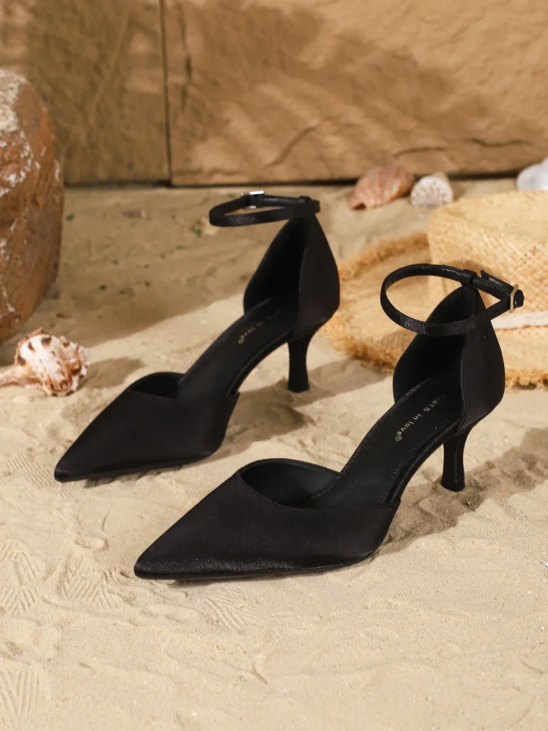 Women’s Fashion Elegant Satin Pointed-Toe Stiletto Heels, Comfortable Simple and Versatile Thin High Heels